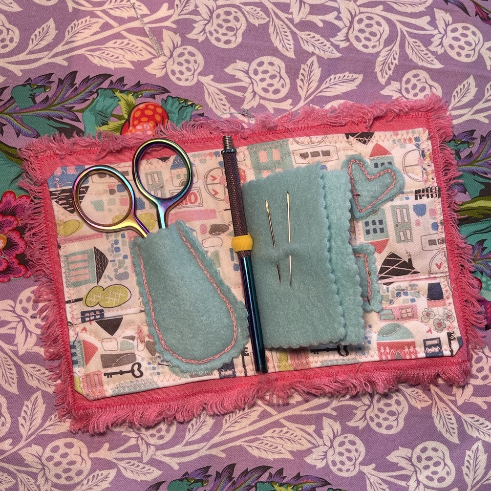It’s holiday time and what better gift for the crafter in your life than this adorable needle book kit? Each kit comes with an upcycled vintage embroidered panel to use for the cover. Also included are:
